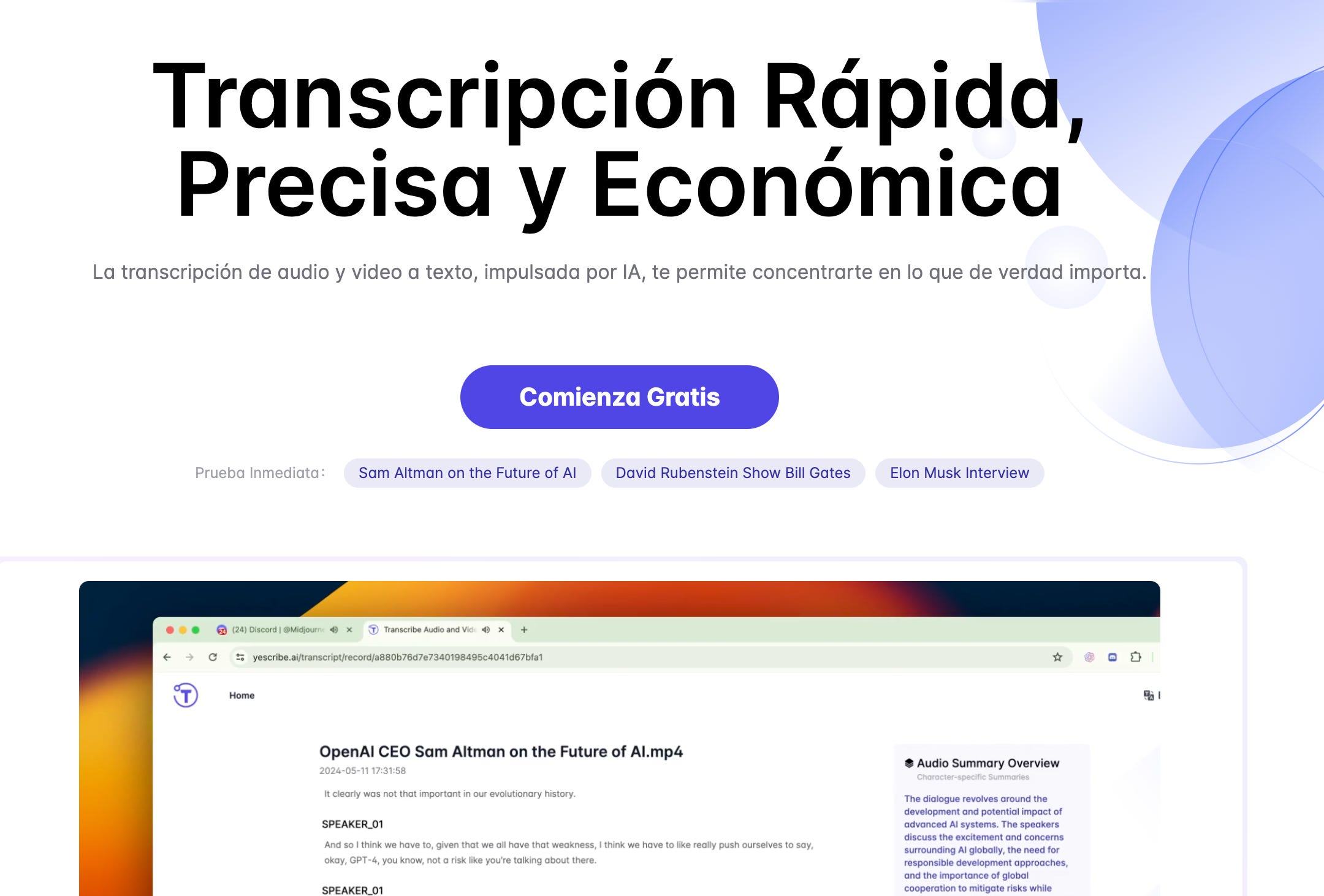 ✅ YeScribe convierte audio en texto de manera rápida y precisa