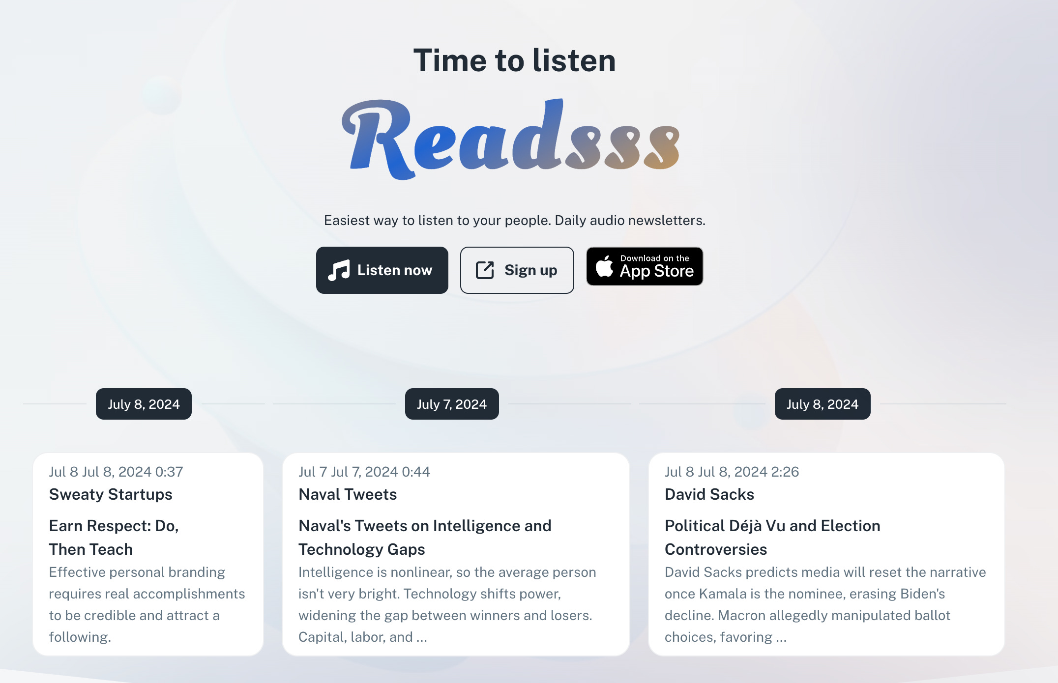 El consumo de contenido en formato de audio está en auge, y Readsss te permite convertir cualquier artículo o texto en un audiolibro.