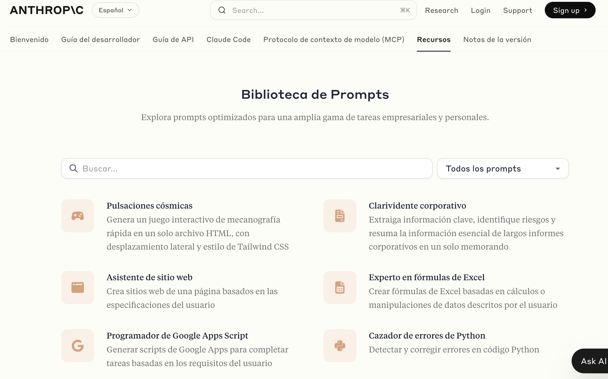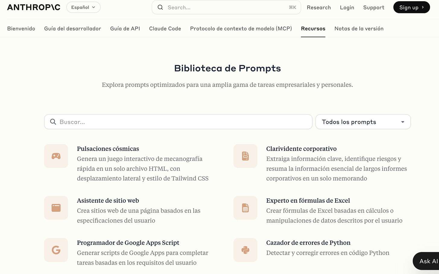 Aquí no hay espectáculo. No hay colores vivos ni frases de gancho. Solo texto. Texto claro. Como si alguien —alguien que sabe— te hablara en voz baja. La biblioteca de prompts de Anthropic no se propone como una galería, sino como un documento de estudio. Cada prompt está acompañado de contexto, propósito, estructura y ejemplos.