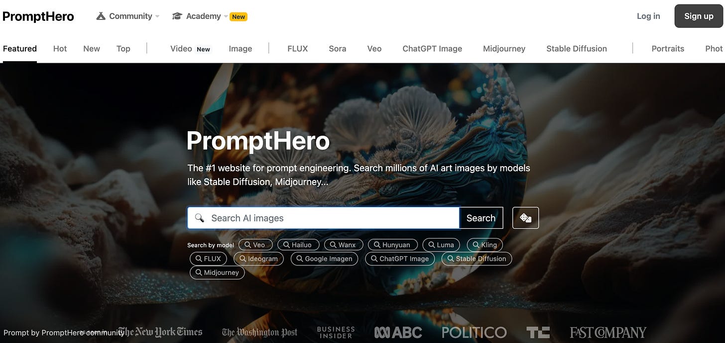 Este sitio es distinto. Aquí no se trata solo de escribir bien. Se trata de ver. De imaginar con los ojos. PromptHero es un catálogo de imágenes generadas por IA, pero lo más interesante es el reverso: las palabras que las hicieron posibles.