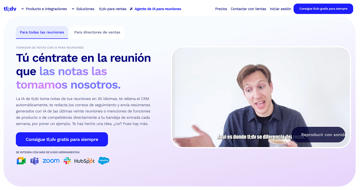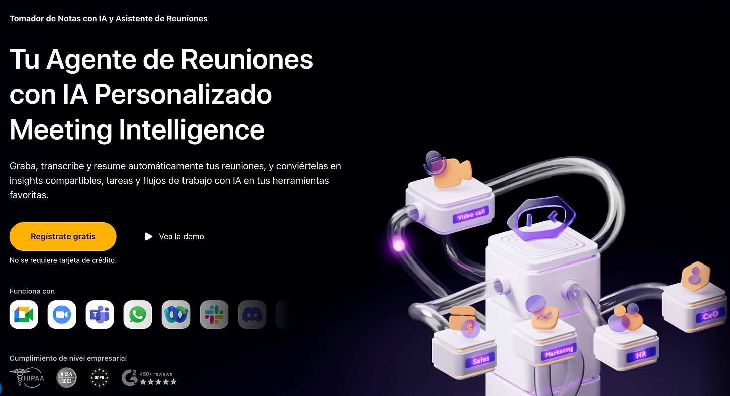 Ideal para: equipos que quieren dejar de tomar notas manuales y aceptan que haya un bot sentado a la mesa.