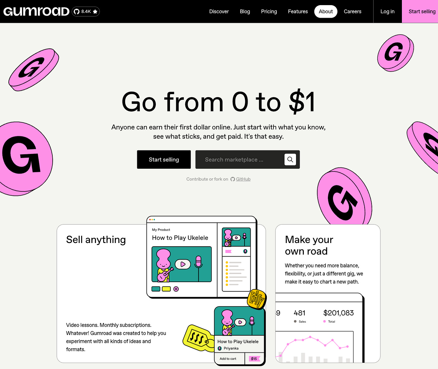 Web de ejemplo: Gumroad