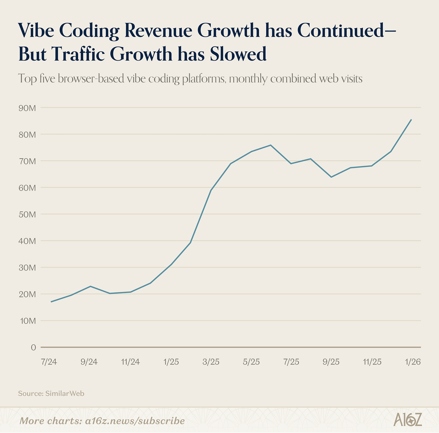 Desde esta edición, A16Z amplía el foco. Ya no importa si un producto nació como IA o mutó hacia ella. Lo que importa es si la IA generativa forma parte nuclear de la experiencia. Y eso, que parece un detalle metodológico, es una declaración de principios: la IA ha dejado de ser una categoría aparte. Se ha convertido en una capa que empapa todo lo demás.