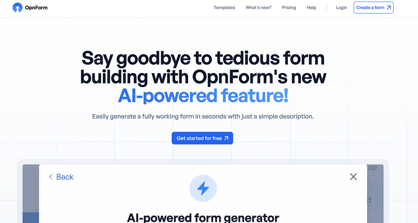 OpnForm juega en otra liga. Es open source, no rastrea a los usuarios y no utiliza cookies. En un contexto donde cada clic parece ser monitoreado, esa decisión lo cambia todo. Su interfaz es limpia y clara, sin adornos, pero bien resuelta. Es perfecto para organizaciones que priorizan la privacidad, o para quienes simplemente no quieren depender de un tercero para gestionar datos. Además, al ser de código abierto, puedes alojarlo tú mismo si lo necesitas.