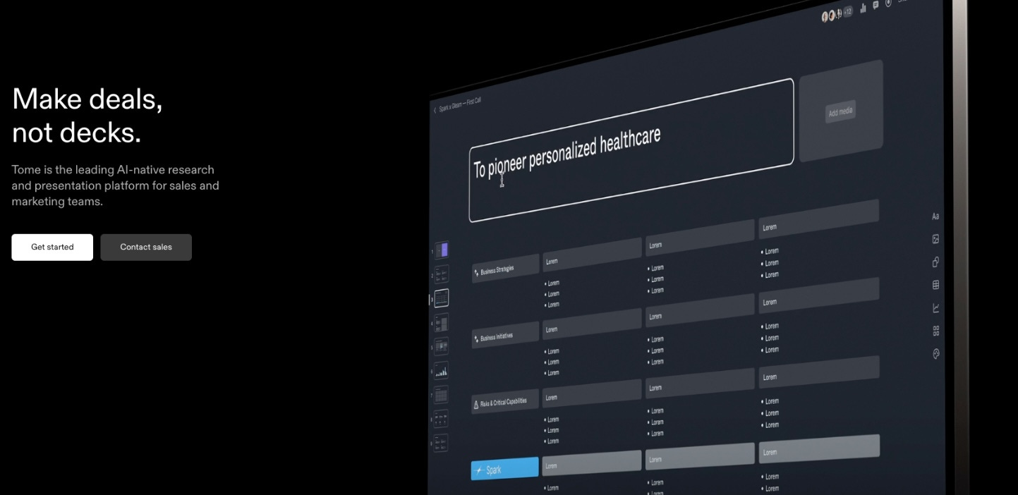 Crear presentaciones desde cero puede consumir mucho tiempo, pero Tome utiliza IA para generar diapositivas estructuradas automáticamente a partir de un tema o idea.
