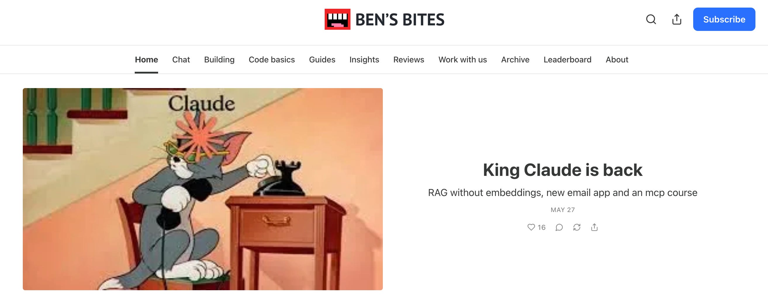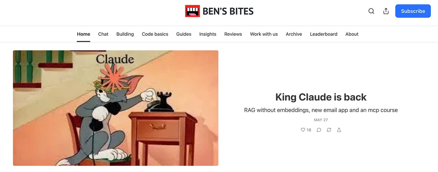 Bonus: Tiene sección de herramientas nuevas cada día, y si alguna se vuelve viral, Ben probablemente fue el primero en mencionarla.