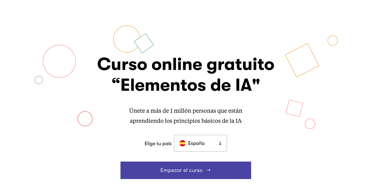 El primero de la lista se llama “Elementos de IA”, y está en español. Un curso tan claro como un vaso de agua, diseñado para que incluso quienes nunca han programado puedan entender de qué va todo esto. La inteligencia artificial no es un truco de feria ni un monstruo de ciencia ficción: es la electricidad de nuestro tiempo. Y este curso es el interruptor.