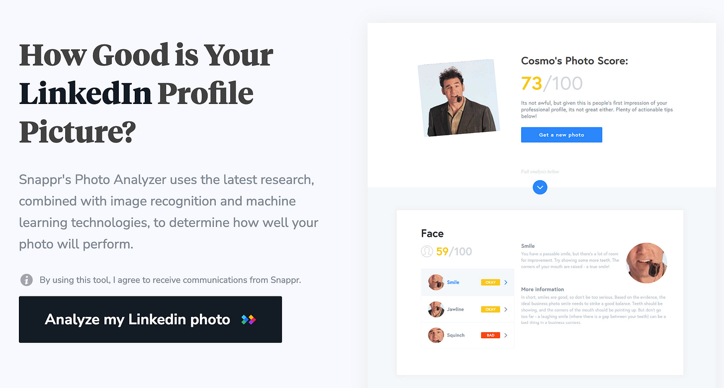 Otra vuelta de tuerca a tu foto de perfil. Subes tu imagen y Snappr, con su IA sin filtros ni piedad, te dice qué tan confiable, competente y profesional pareces.